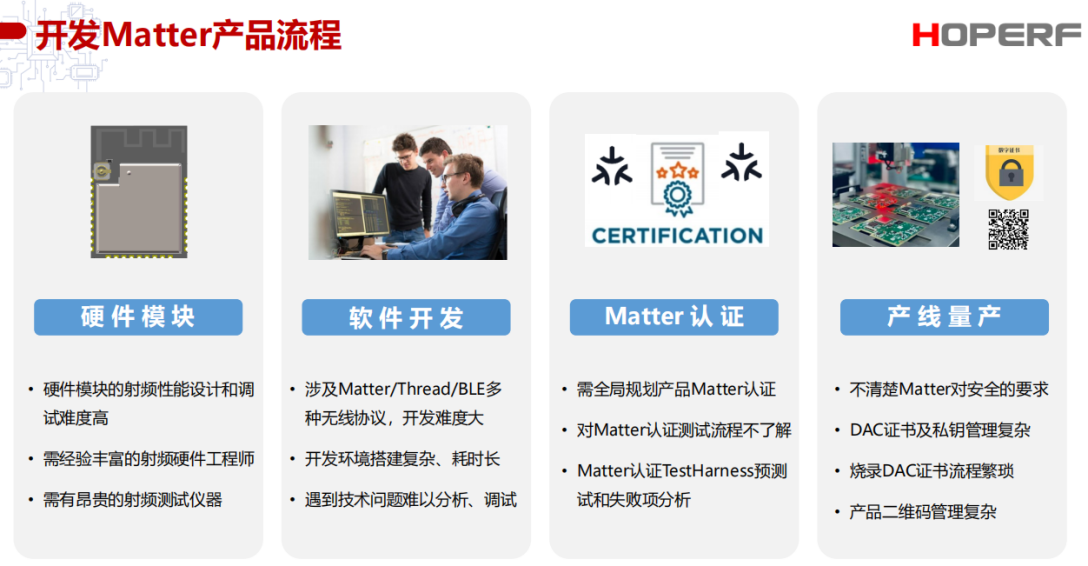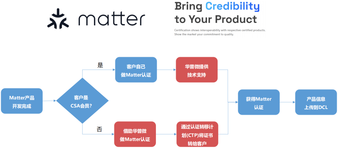 以智能照明为例,家居设备制造厂商在直接使用市场中现有的Matter模块完成相关LED产品的研发后,只需通过Matter模块原厂提供的技术支持或者认证转移计划(CTP)即可快速拿到Matter认证,将产品完美接入不同生态平台之中。这种开发方式不仅可以节省企业在Matter模块上的开发投入,还可至多提升70%的研发进度,助力企业产品快速上市抢占市场!